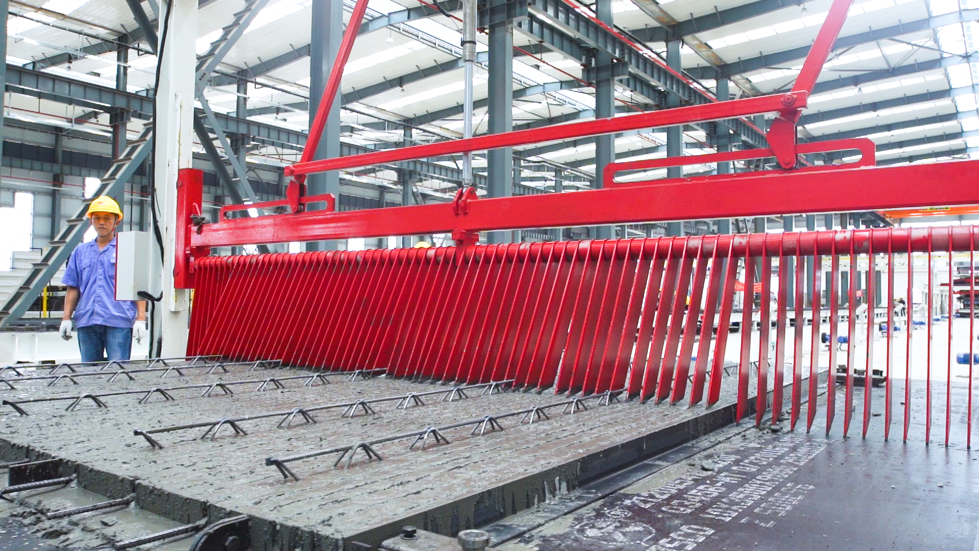6.搓平:用搓平機(jī)對(duì)布好料的模臺(tái)表面搓平,使表面平整光滑。